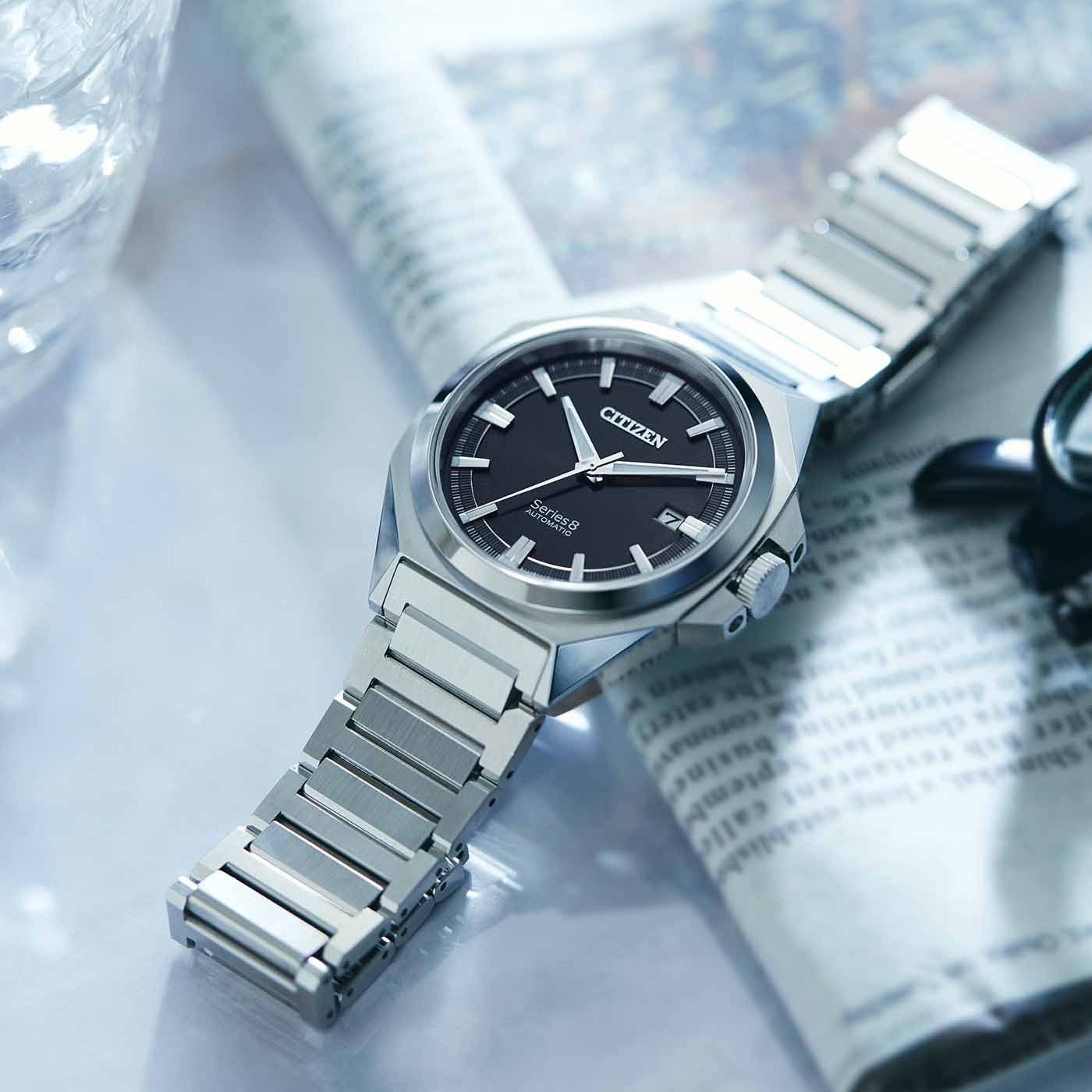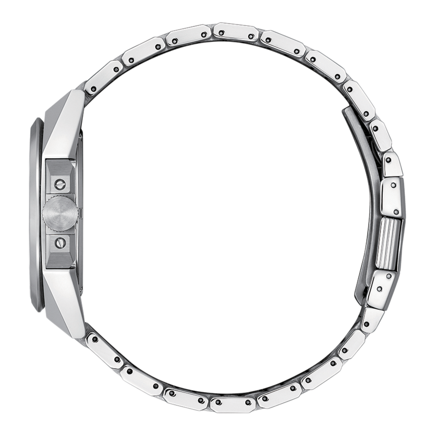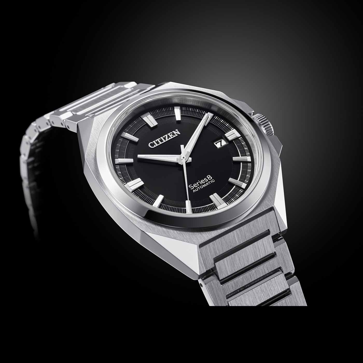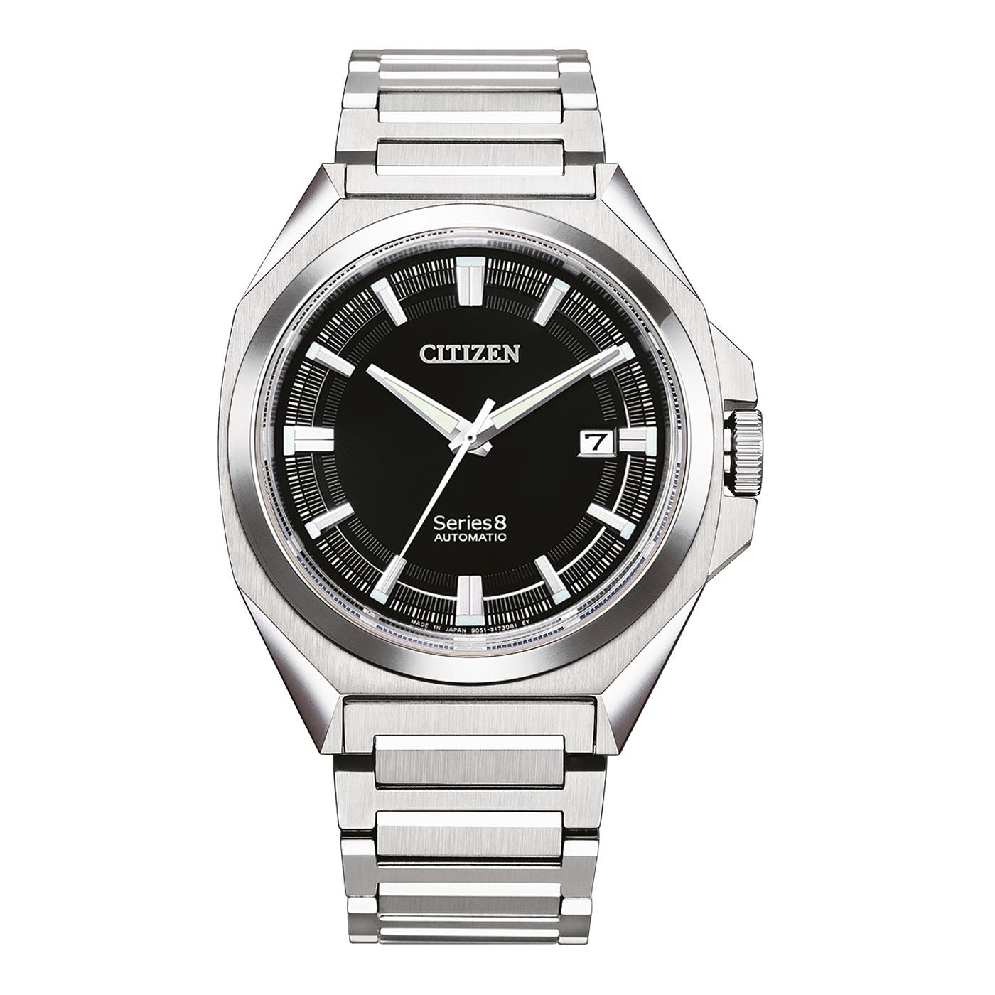 Die Leistung einer Sportuhr mit unendlichen Möglichkeiten neu definieren. Die Citizen Series 8 Mechanik-Kollektion bietet moderne Zeitmesser für eine moderne Welt. Die sportlichen Designs mit leistungsstarken Automatikwerken hinterlassen einen starken Eindruck. Heben Sie sich stilvoll ab mit der raffinierten, charakteristischen mechanischen Uhr 831, die sich durch eine überragende Ganggenauigkeit von -10 bis +20 pro Tag auszeichnet. Sie verfügt über ein schlankes, silberfarbenes Edelstahlgehäuse und -armband in Hairline- und Hochglanzausführung, ein schwarzes Zifferblatt mit Leuchtzeigern und -markierungen sowie ein entspiegeltes Saphirglas. Diese elegante Citizen-Automatik-Sportuhr für Herren verfügt außerdem über eine verbesserte Magnetresistenz zum Schutz des Uhrwerks gegen externe Magnetfelder, eine Gangreserve von 42 Stunden und eine Wasserdichtigkeit bis 10 Meter. Kaliber Nummer 9051.
