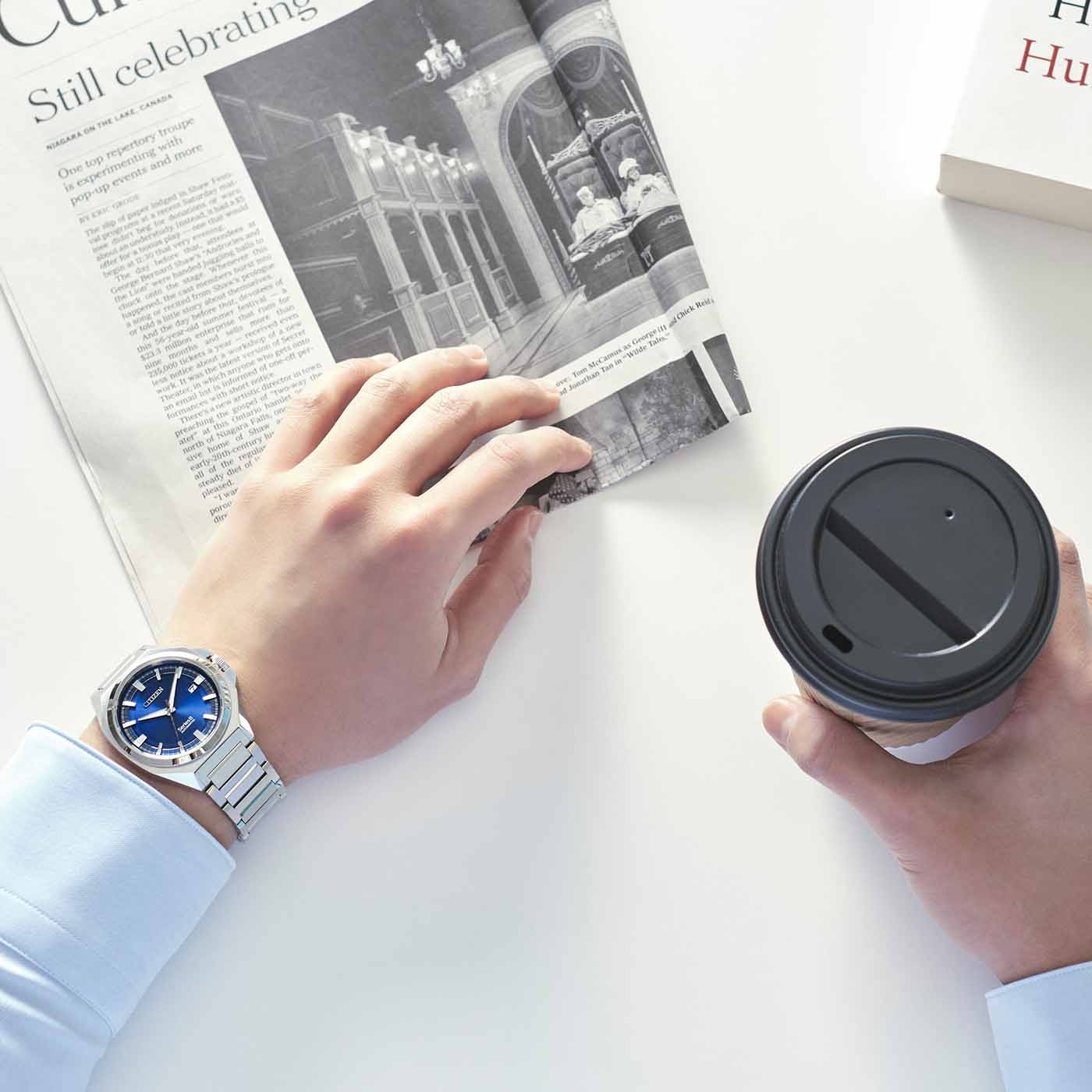 ♲ Die Leistung einer Sportuhr mit unendlichen Möglichkeiten neu definieren. Die Citizen Series 8 Mechanik-Kollektion bietet moderne Zeitmesser für eine moderne Welt. Die sportlichen Designs mit leistungsstarken Automatikwerken hinterlassen einen starken Eindruck. Heben Sie sich stilvoll ab mit der raffinierten, charakteristischen mechanischen Uhr 831, die sich durch eine überragende Ganggenauigkeit von -10 bis +20 pro Tag auszeichnet. Sie verfügt über ein schlankes, silberfarbenes Edelstahlgehäuse und -armband in Hairline- und Hochglanzausführung, ein glänzendes blaues Zifferblatt mit Leuchtzeigern und -markierungen sowie ein entspiegeltes Saphirglas. Diese elegante Citizen-Automatik-Sportuhr für Herren verfügt außerdem über eine verbesserte Magnetresistenz zum Schutz des Uhrwerks gegen externe Magnetfelder, eine Gangreserve von 42 Stunden und eine Wasserdichtigkeit bis 100 Meter. Kaliber Nummer 9051.