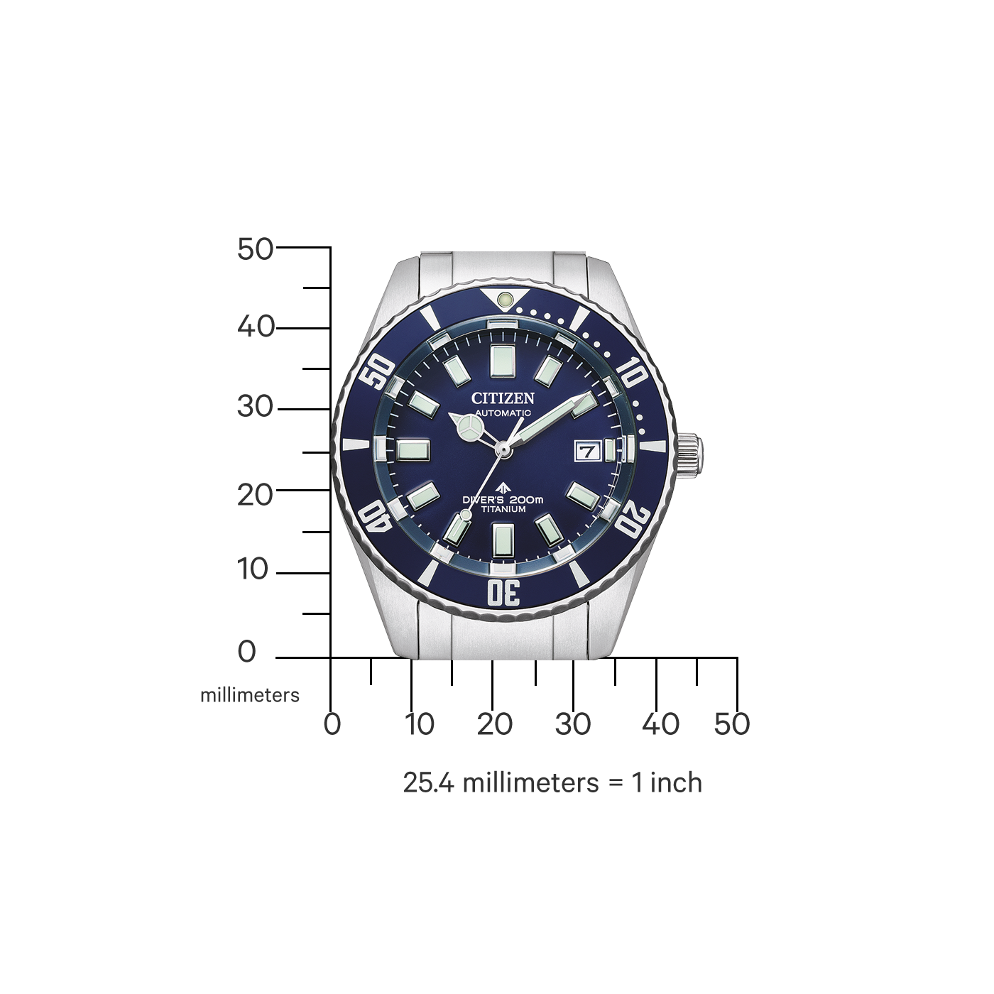 Die neue Promaster Mechanical Diver ist ein Klassiker aus den 70er Jahren, der tief in der Citizen-Tauchergeschichte verwurzelt ist und mit modernen Funktionen für den Einsatz im Meer oder im Büro ausgestattet wurde. Das Retro-Design basiert auf der Citizen Challenge Diver, die mit Seepocken bedeckt an einem australischen Strand gefunden wurde, nachdem sie jahrelang im Meer getaucht war - aber immer noch funktionierte. Diese Geschichte hat unsere neue Promaster Mechanical Diver inspiriert und ihr den liebevollen Spitznamen Fujitsubo gegeben - japanisch für Seepocke. Das leichte und kratzfeste Super TitaniumTM-Gehäuse wird ergänzt durch ein blaues Zifferblatt mit geprägten Zeigern und klassischer grüner Leuchtmasse für ein Vintage-Gefühl, eine drehbare Lünette für die verstrichene Zeit und ein entspiegeltes Saphirglasfenster. Ein silberfarbenes Super Titan™-Armband rundet diesen modernen Zeitmesser perfekt ab. Dieser sofortige Klassiker mit Automatikwerk verfügt über eine erhöhte Magnetresistenz zum Schutz vor Störungen durch Alltagsgeräte sowie eine Gangreserve von 42 Stunden. Diese Hochleistungsuhr ist ISO-konform und wasserdicht bis 200 Meter. Kaliber Nummer 9051.