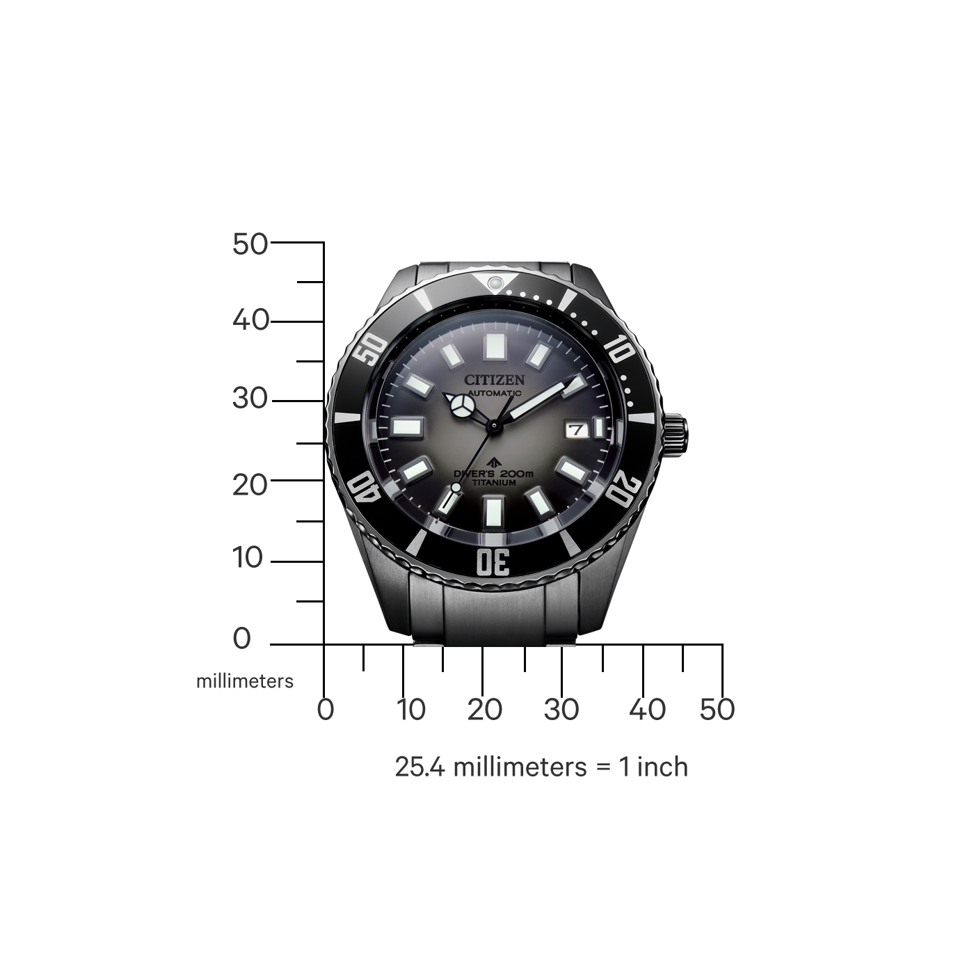 Montre Citizen, lunette noire, titane, montre de plongée, automatique, cadran gris, affichage de la date