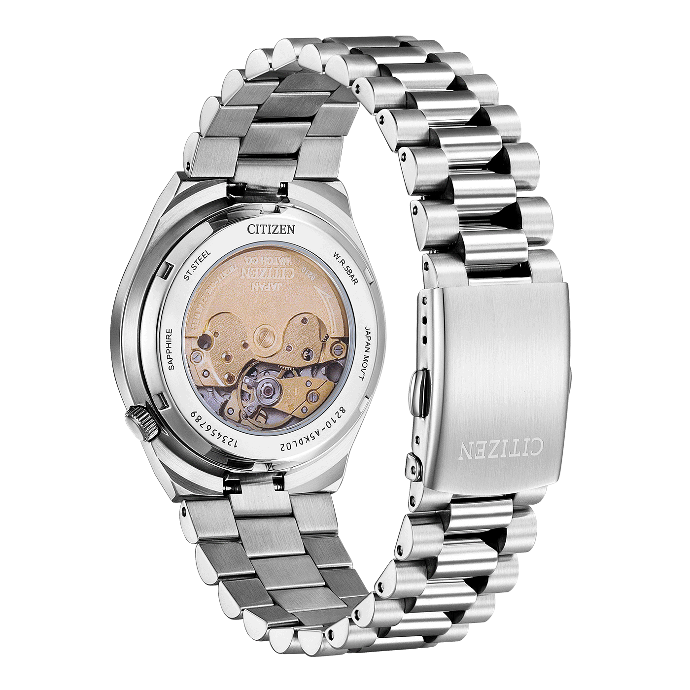 Modern automatic watch from the TSUYOSA collection with stainless steel case and bracelet, sapphire glass and copper-colored dial. Equipped with the mechanical caliber 8210 with 40 hours power reserve, +/-20 seconds accuracy/day, date display and 5 bar water resistance. Case diameter: